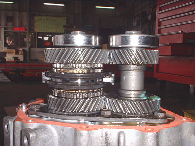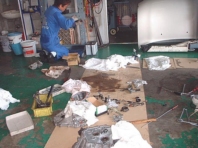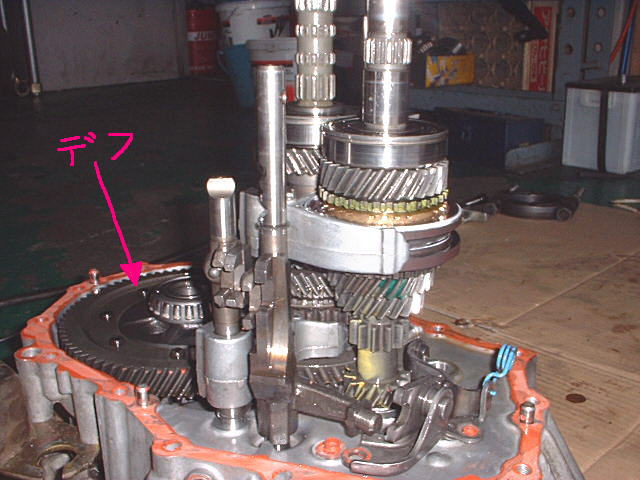 | ようやく残りのギヤーです・・・4→3→2→1とバックギヤーです。 コレを取り外してバラバラにします。 奥に見えるのが、デフで御座います。 FF車は、LSDを装着すのが、結構大変ですよ! ![]() |