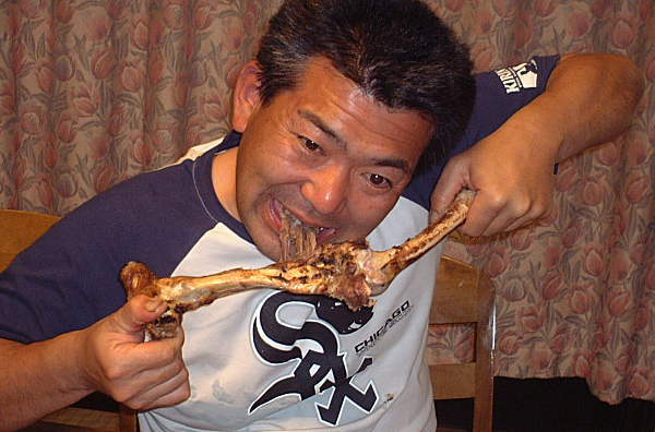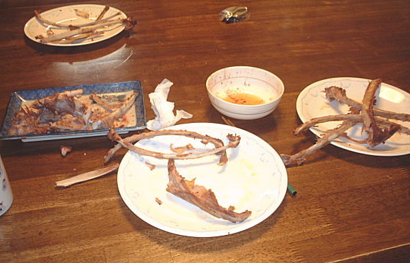 | これは、イノシシのアバラ骨の残骸・・・ 美味しかったです! 一同、合掌。 ![]() |